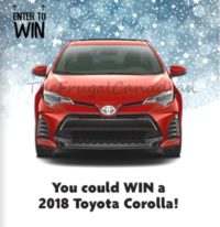 Free 2018 Toyota Corolla Being Given Away Free 2018 Toyota Corolla Being Given Away – Enter Contest Contest closes February 14, 2018 at 11:59:59 p.m. ET. 1 prize available to be won: One (1) 2018 Toyota Corolla SE… Continue reading