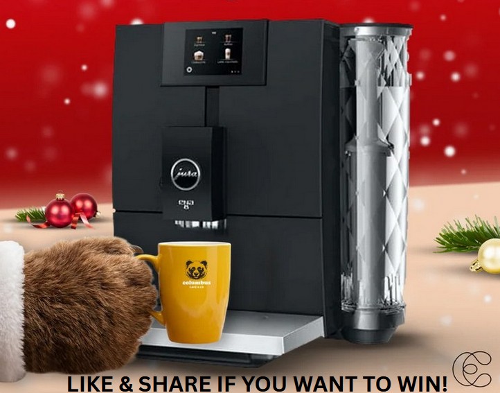 From December 1 to 15, 2025, try your luck at winning a JURA ENA 8 machine and a Columbus coffee kit including a bag of espresso coffee, a Columbus mug, a reusable Ecotasse cup, a pair of Columbus socks, and a set of metal straws.