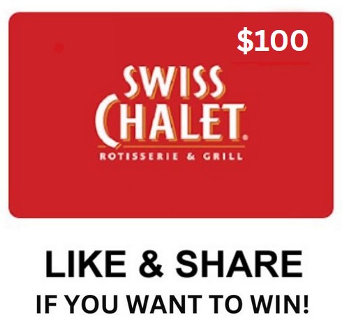 There are 30 grand prizes to be won, valued at $100 CAD each and each consisting of: $100 Swiss Chalet gift card. Odds depend on the total number of eligible entries received. Participation is limited to one (1) entry per person, per day, during the contest period.